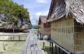 Kapisawar village is nearby and a great day’s outing can be had there and in Sawinggrai which lies a bit further to the east along a well made concrete path. The dawn display of Red Birds of Paradise can be seen at Sawinggrai and hordes of colourful reef fish gather every day for feeding at the jetty there.