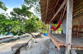 The bungalows are situated on the edge of the beach, and have covered verandahs with sea views. A table, chairs and a hammock are provided..