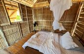 Bedding is mattresses on the floor. Mosquito nets, pillows, bolsters, sheets and a blanket are provided. bath towels are also provided for guests.