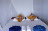 Bedrooms sleep two people on raised beds, and pillows, bolsters, sheets and mosquito nets are supplied. Extra mattresses can be provided if required. Both bungalows have power outlets for charging devices and bedroom light switches.