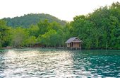Citrus Homestay is a single, private, over-water bungalow, occupying a sheltered cove on Pulau Yanggelo’s northern shore.