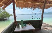Dugong homestay was perfect. A nice patch of sand tucked at the entrance of a secluded bay with a couple of waterfront bulgalows. Food prepared by Ibu was delicious and she kept it varied through my entire stay. The bungalows are simple but very comfy and right over the water, at high tide you can jump from your own personal terrace straight to the sea! Fresh water is abundant for your daily showers and the resort grounds were kept neat and spotless by the family. you open your eyes in the morning to be treated to a wonderful sunrise while listening to the rich birdlife just on top of you: white and black cockatoos, various other parrots and doves even fishing eagles flying low enough you can even see what kind of fish they have got for their breakfast. While on your private terrace, you will get to see baby sharks hunting in the shallows during the day and with your lamp during the night baby stingrays doing the same. Snorkeling is brilliant at the entrance of the bay especially at the beginning of high tide when i used to go far away and slowly strike my fins to remain at the same spot while seeing sharks (black tips and white tips), barracudas, bumpheads….. there is a patch of mangrove next to the bungalows with residing kalabyas (epaulette sharks) and baby barracudas and sharks as well as mangrove fishes and enough sandy bottoms and sea gras to get your treat of blue spotted stingrays. Musa made every effort to help me spot a duggong, which we managed to do. his brother accompanied me to two daytrips once to 2 neighbouring islands with brilliant snorkeling, sea eagles and fruit bat colonies and once to the cleanest waterfall in indonesia through a very intriguing mangrove forest. i highly recommend going there, especially if you want to stay and experience a remote naturalistic place. The family is caring and always smiling and Musa and his brothers want to make the place even more enjoyable and confortable for next visitors, he has got a lot of brilliant plans for the future. he kept me entertained during many evenings and i highly improved my bahasa through my stay with them. Thank you for a wonderful experience