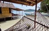 The homestay itself is nice with relatively large huts, and very nice hammocks to relax in and view the sunset. With 7 huts this is a larger homestay and it can get crowded at the dinner table. I was travelling solo, so I welcomed the company and it was easy to share trips with others, as there were different trips every day and the homestay has 2 boats with shade covers that can take 6-8 persons. The reef right in front of the homestay is in relatively poor conditions by Raja Ampat standards (large areas of broken and dead corrals), but the reef is much nicer past the jetties that are to the left or right of the homestay. Overall I mostly enjoyed my stay but the overbooking situation was very annoying.