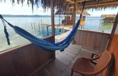 The bungalows have covered verandahs with sweeping ocean views. Chairs and a hammock are provided on the verandahs.