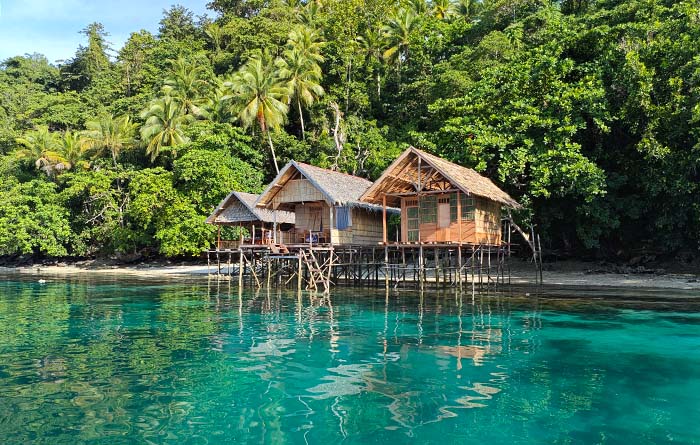 Korain Homestay lies in a small, private bay on Pulau Friwen’s sheltered northern shore.