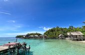 Gorgeous location on a small island off Gam, with nine bungalows, most of them built on stilts over the water. Comfort is noticeably better than some of the ultra-basic homestays elsewhere. Big beds, spacious verandas, hammocks, great views. At around 411K rupiah all inclusive, it’s probably one of the best value options in Raja Ampat.