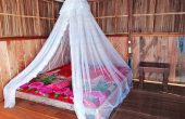 The homestay consists of one building with four rooms. It is built in the usual island construction style, a raised wooden or bamboo framework with a high palapa-style roof and woven palm leaf walls. The doors are of the same construction and slide back and forth on a bamboo rod. The floors are solid wood.