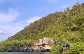 Two overwater bungalows and meals/kitchen are nestled in the beautiful mangroves, a peaceful, picture postcard setting between the lush mountain and sea. This homestay is simple but totally charming , a good place to unwind and soak up the magnificent nature around you. You can watch the never ending parade of sea life from the verandah hammock or take the path at the back for a stroll along the water towards the nearest village. The house reef is beautiful and easy to access even for an oldie like me.