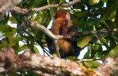 I contacted Husna at the Raja Ampat Tourist Association and she was able to arrange a guide to take us to watch the Cendrawasih mating dance at a location 30 minutes from Waisai. We left at 5 am and were in place in a treehouse/blind before dawn. As soon as it became light, about a dozen male red birds of paradise started dancing and displaying their stuff while the females watched intently.